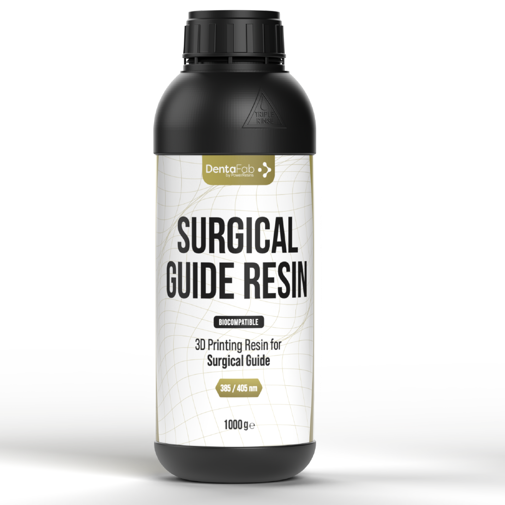 After the printing is completed, wash the part as attached to the building plate with ethyl alcohol (>%90) or isopropyl alcohol (>%90) for 5 minutes. Make sure that alcohol covers the part entirely when washing. Since the Surgical Guide resin is biocompatible never wash it with the alcohol used for other resins before. Use a brush to remove uncured resin if needed. Do not over-wash, it may cause deterioration in dimensions of the part.